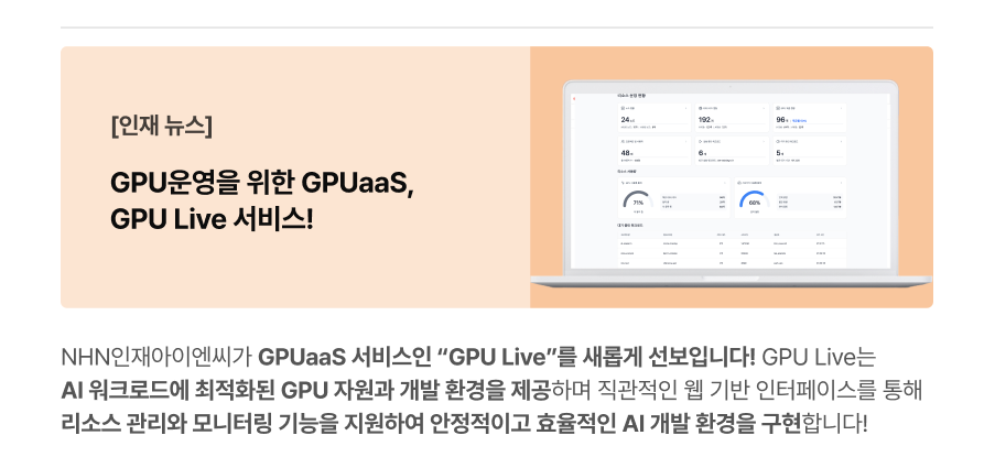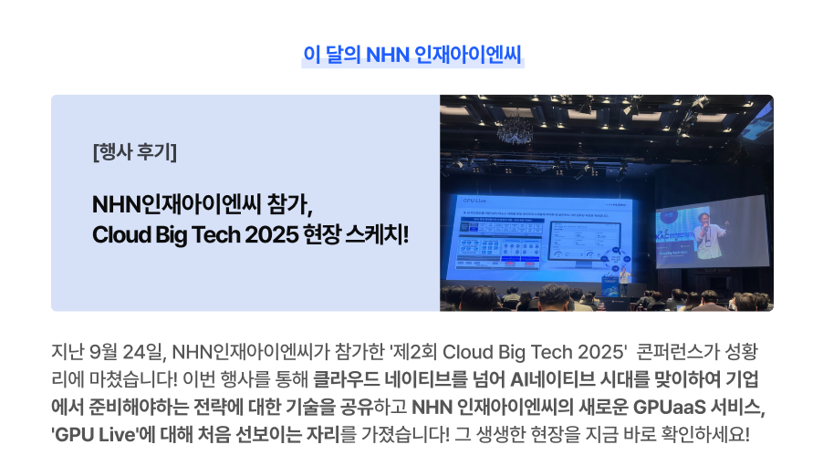 NHN클라우드, ‘AI TECH+ 2025’서 GPU 인프라·AI 플랫폼 선보인다 - NHN인재아이엔씨와 공동 개발한 솔루션 GPU Live 선보일 예정